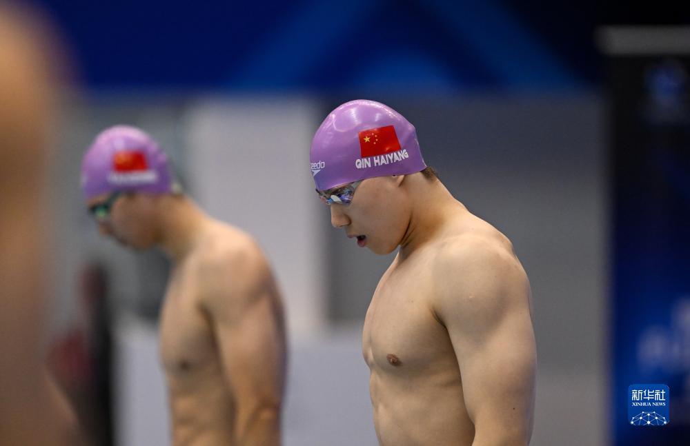7月23日,中国选手覃海洋(上五)在须眉100米蛙泳半决赛中,最终他以57秒82的收货突破亚洲记录,晋级决赛。新华社记者 夏一方 摄
