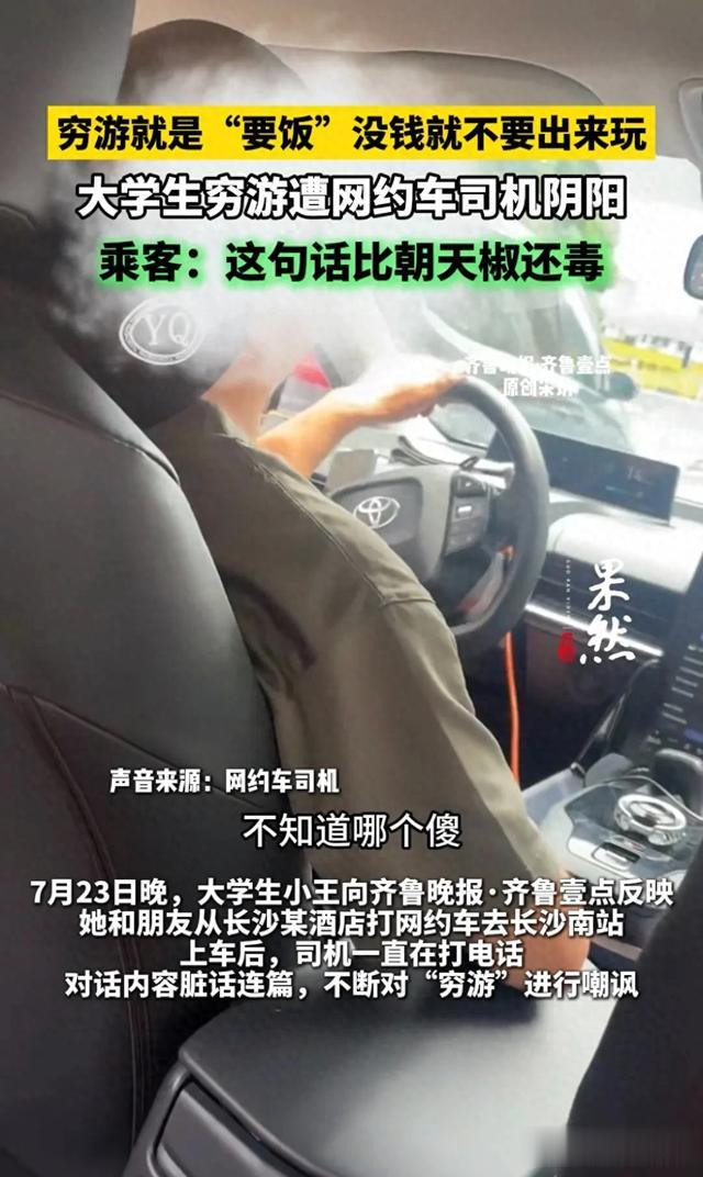 更为过分的是司机对大学生穷游伸开了热烈的嘲讽:“不知谈哪个XX发明的穷游,没钱就不要出来玩,穷游是出来要饭的,长沙东谈主就算要饭也轮不到穷游的”。