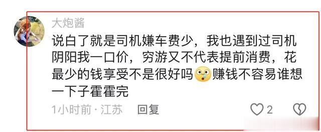 说白了便是嫌车资少,我也遭逢过这么的司机,穷游又不代表不蹧跶,没钱就省着点花永别吗?